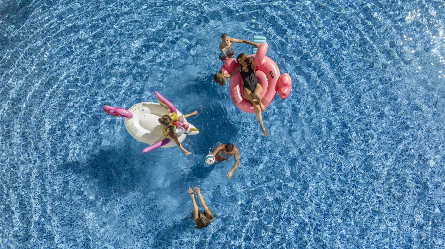 שימוש בבריכות חיצוניות ומגלשות מים